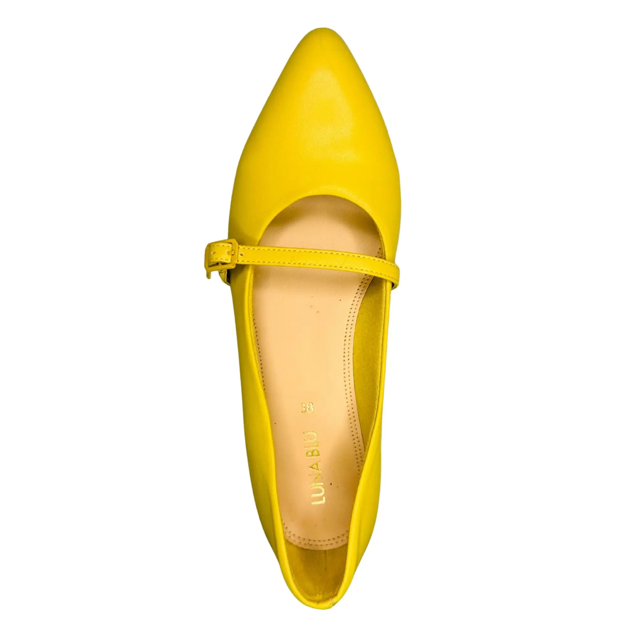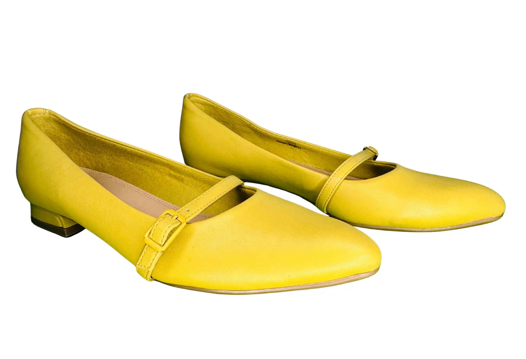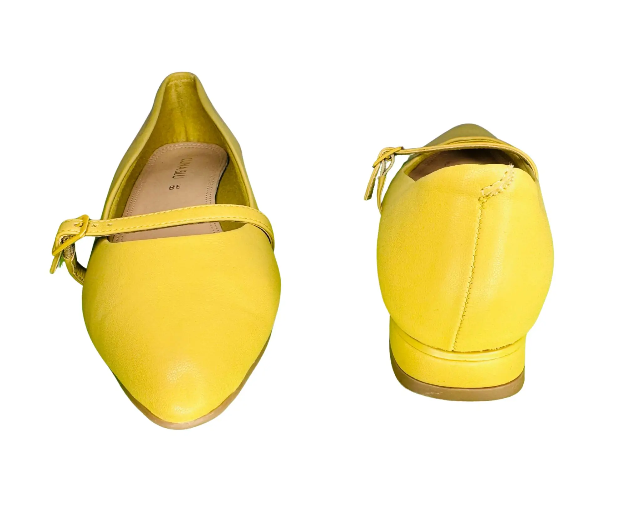Stand out in sunshine style with these Luna Blu Yellow Flats. Featuring a charming front buckle strap, pointed toe silhouette, and comfy low-rise heel, they’re ideal for everyday wear or casual outings. A bold statement piece that still keeps it easy on the feet.