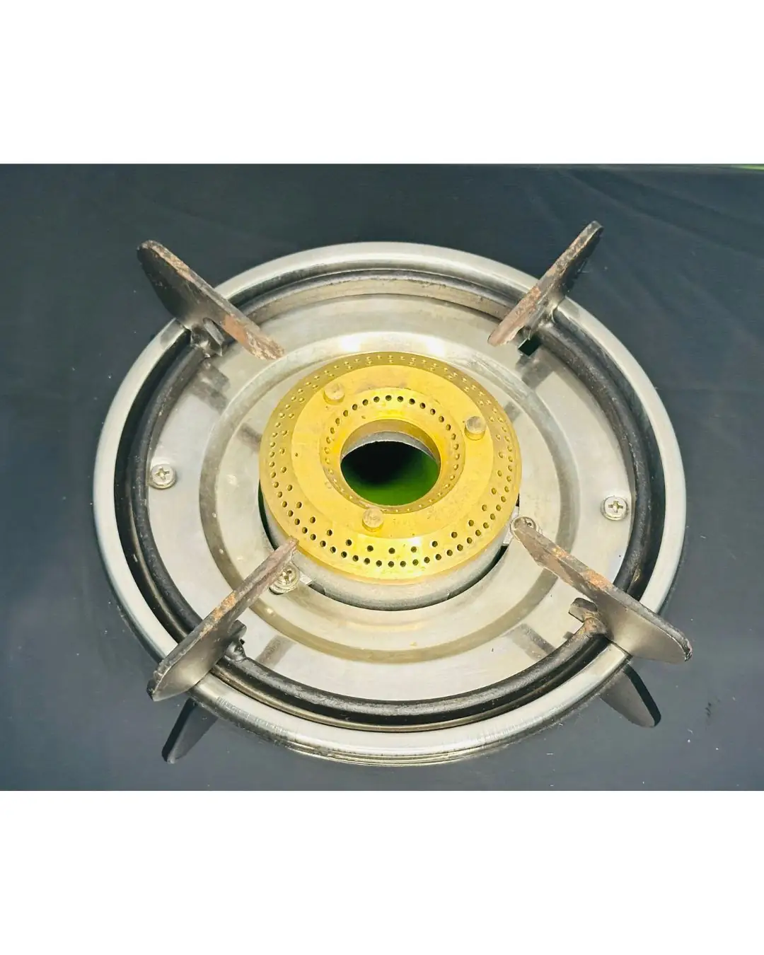 Durable and stylish 1-burner cook top with brass burner, toughened glass, and stainless steel tray. Barely used, excellent condition.
